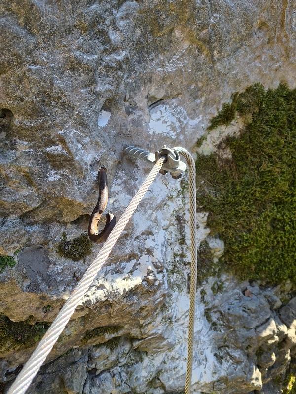 Aufgrund des großen Schadens wurde das Seil auf einer Länge von 16 mtr incl. der Klettersteiganker saniert.